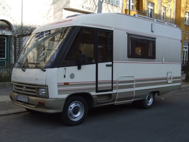Zweitbesitz, EZ 1994, 74100 Km, HU 05/ 2010, letzte Gasprüfung: 05/ 2008, beige/ braun, L5605, B2245, H2801, TD mit Servo, 70 KW, bis 126 km/ h, 5 Schlafplätze, Hubbett und schnell umrüstbare Essgruppe, integrierte Fahrerkabine mit nach innen drehbarem Beifahrersitz, Innenraum Eichenfurnier, diverse Schränke und Staufächer, Frischwasser 60 L, Abwasser 70 L, Küche mit Gaskocher, Kühlschrank für Gas und Strom, Durchlauferhitzer, Bad ungenutzt, Ausfahrbare Analogantenne (geeignet für DVBT-Receiver), Radio, Isoliermatten für Fenster der Fahrerkabine, 50-L-Gasflasche, Spaten, Adapterkabel für Euro-Stecker-Stromanschluss.