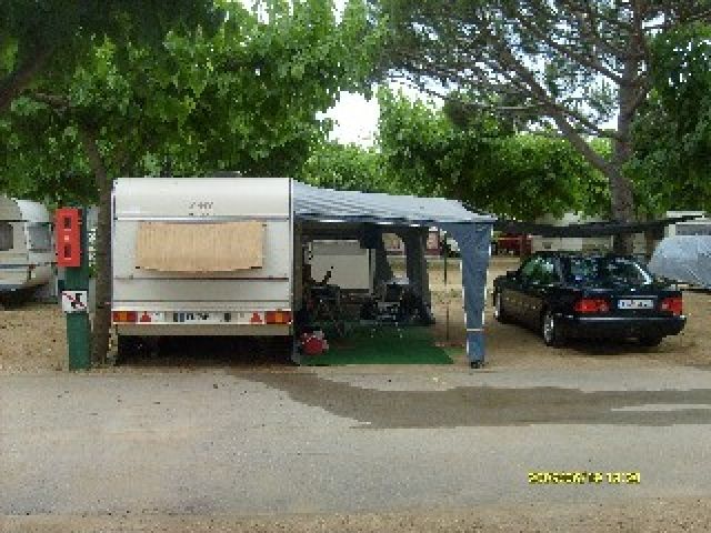 Breite 2, 295 und Höhe 2, 502, steht in einem Winterlager an der Costa-Brava und kann dort sofort für einen Strandurlaub genutzt werden, ein Camingplatz am Meer kann empfohlen werden. Der Wagen verfügt über ein grosses Bett für 2 Personen, das durch Schiebetür von Küche und Sitzecke abgetrennt werden kann. Die Rundsitzecke mit Tisch kann zu einem Bett f. 2 Personen umgebaut werden. Die Möbel, Kleiderschrank und Hängeschränke sind aus hellem Holz mit viel Platz. Die Küche hat Kühlschrank f. Gas u. Strom und 3-flammigen Gasherd.