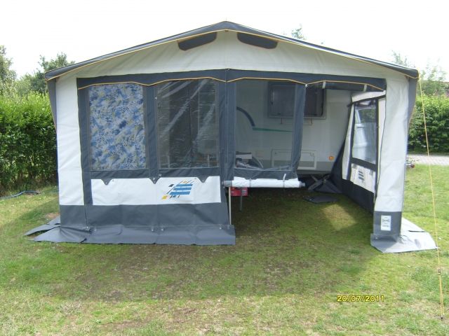 Columbus Ganzjahresvorzelt H: 220 -240 cm, B: ca. 400 cm ( passend für z.B. Eriba Nova 390 ), Umlaufmaß: 800 cm, zusätzlich 2 Seiteneingänge, große Seitenfenster, Alugestänge mit Schnellverstellung, Vorhänge ( neu ), Heringe + Schnüre dabei. Das Zelt ist neuwertig ( 2x kurzzeitig gebraucht ). Verkauf wg. Kauf eines größeren Wohnwagens. Auf Wunsch mehr Bilder