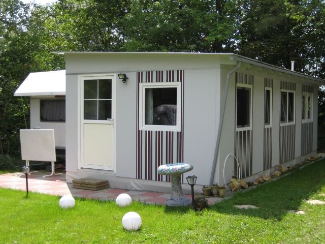 grossem, winterfestem Vorbau (803 cm x 352 cm), Jahrgang 2006, sehr gepflegter Zustand und sehr viel Zubehör; fliessend Wasser und Abwasser auf der Parzelle; Parzellengrösse von 120 - 250 m2 frei wählbar