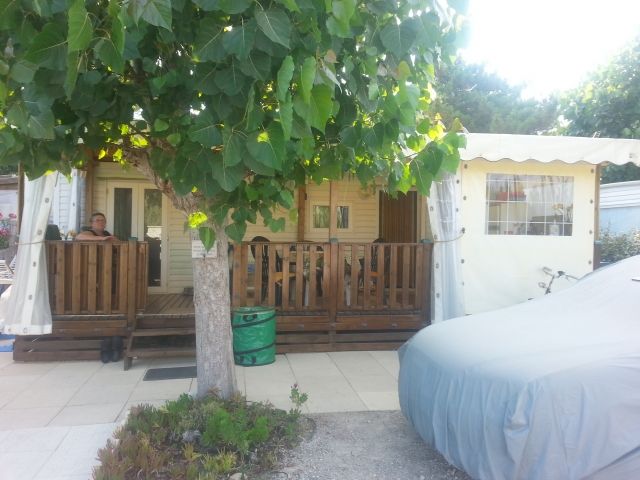 Mobilheim auf Kontiki: Das Mobilheim ist komplett ausgestattet. 200 m vom Strand (Plage de Pampelonne). Perfekter Strandurlaub auf Kontiki. Für max. 5 Personen. 2 getrennte Schlafzimmer (1 Doppelbett + 2 Einzelbetten (und ein Bett für ein 1 Kind), Bad mit Dusche, WC, Klima, Einbauküche, Terrassenküche, Digital-Sat-TV (Deutsch) mit DVD-Player, Musikanlage, 2 Kühlschränke, Gefrierschrank, Mikrowelle, 4-flammiger Gasherd im Mobilheim und 4-flammiger Gasherd auf Terrasse, Sonnenschirme, Liegen, Tische und Stühle (alles mit Auflagen).