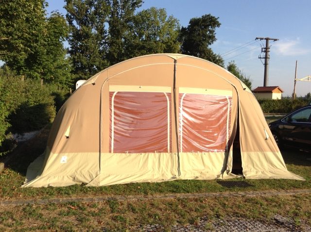 Wir verkaufen unseren fast neuen großen Faltcaravan mit 29 m2 Wohnfläche, kaum gebraucht, aus erster Hand (EZ: Mai 2012), mit folgender Zusatzausstattung: Auflaufbremse AL-KO, Auflastung 650 kg, 100er-Zulassung, 13 Räder, Betten-Comfort-Paket (2 x isoliertes Lattenrostbett mit Duraflex-Matratzen 200 x 165 cm), einziebarer 30 cm hoher wie eine Wanne wirkender Vorzeltboden mit Rundum-Reissverschluß, Ersatzrad mit Halterung, Bugrad, Kocher 2-fl. mit Unterschrank, Gepäckträger mit 4 Fahrradhalterungen. Rundsitzgruppe im Anhänger, darunter viel Stauraum, Schnellspanngestänge und Sturmgurte. Fenster blickdicht verschließbar mit Moskitonezt und von außen aufrollbaren Regenfenstern. Aufbauzeit lt. Hersteller 25 min (Aufbauvideo auf der Homepage des Herstellers). Nichtraucherfahrzeug, wurde ausschl. in d. Garage abgestellt. (Neupreis inkl. Zusatzausstattung: 10.585, 00)