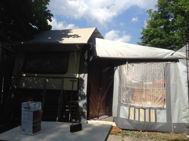 Umbauter Wohnwagen mit festem Vorbau in Kamp-Lintfort zu verkaufen
